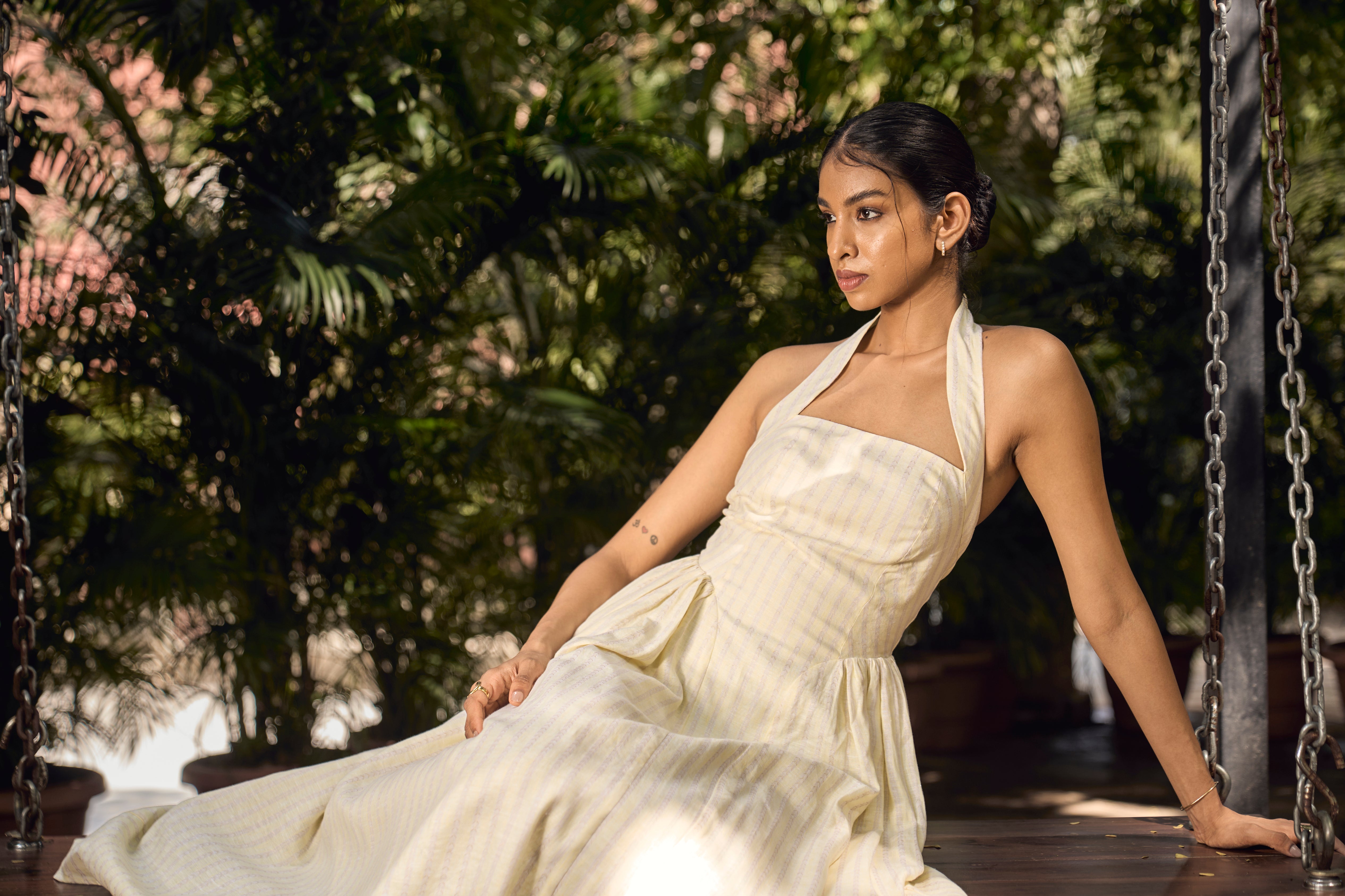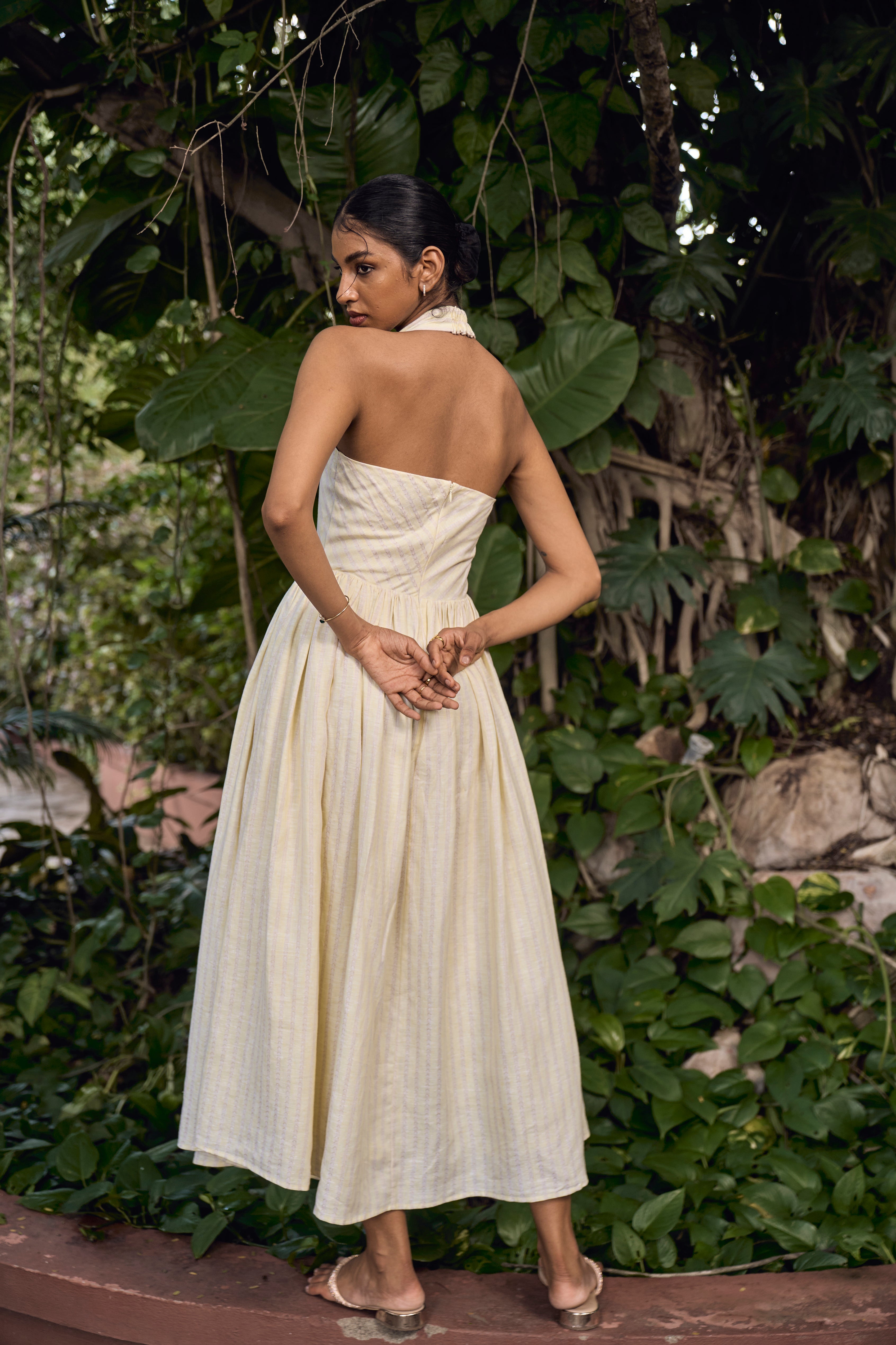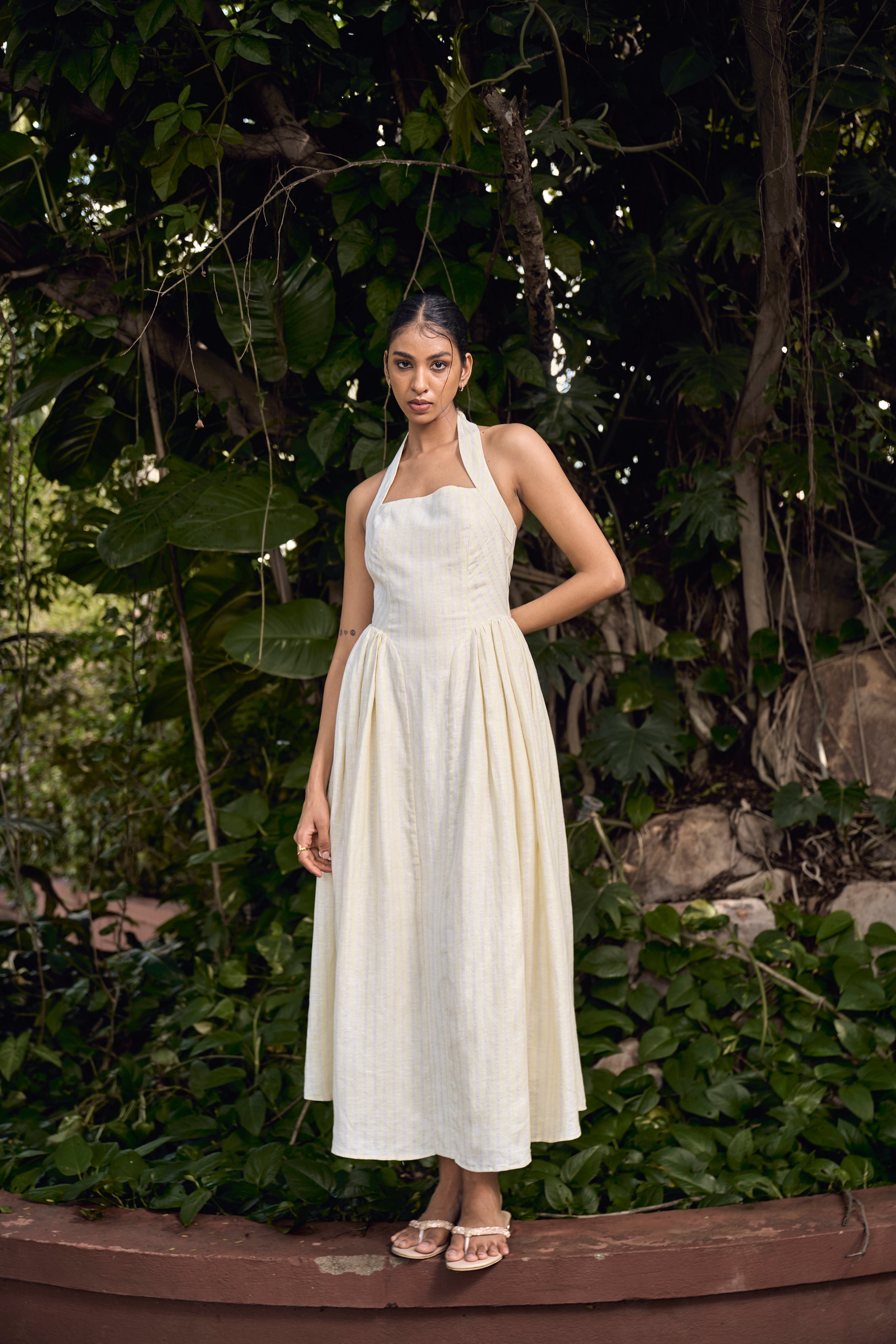 BRIELLE HALTER DRESS : PALE YELLOW BY BEIGE