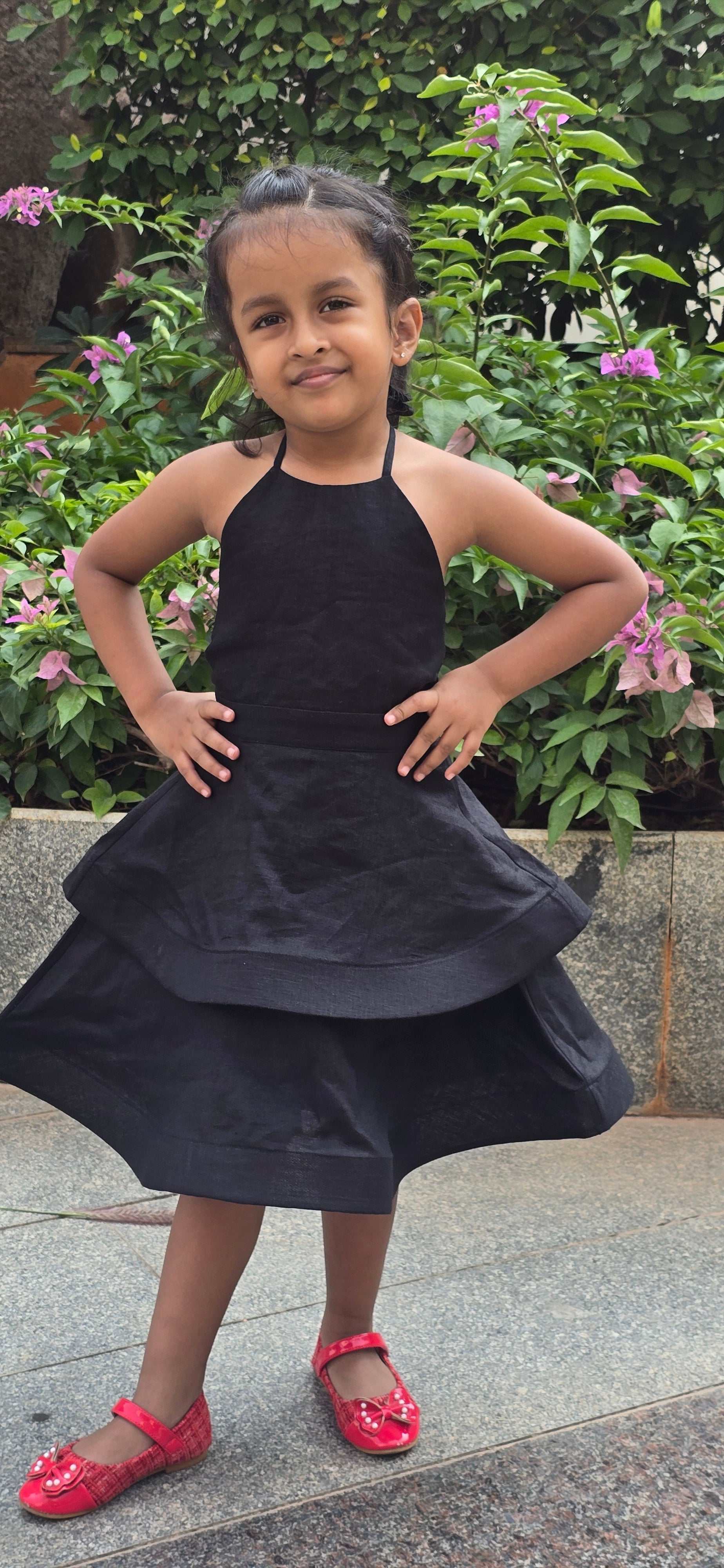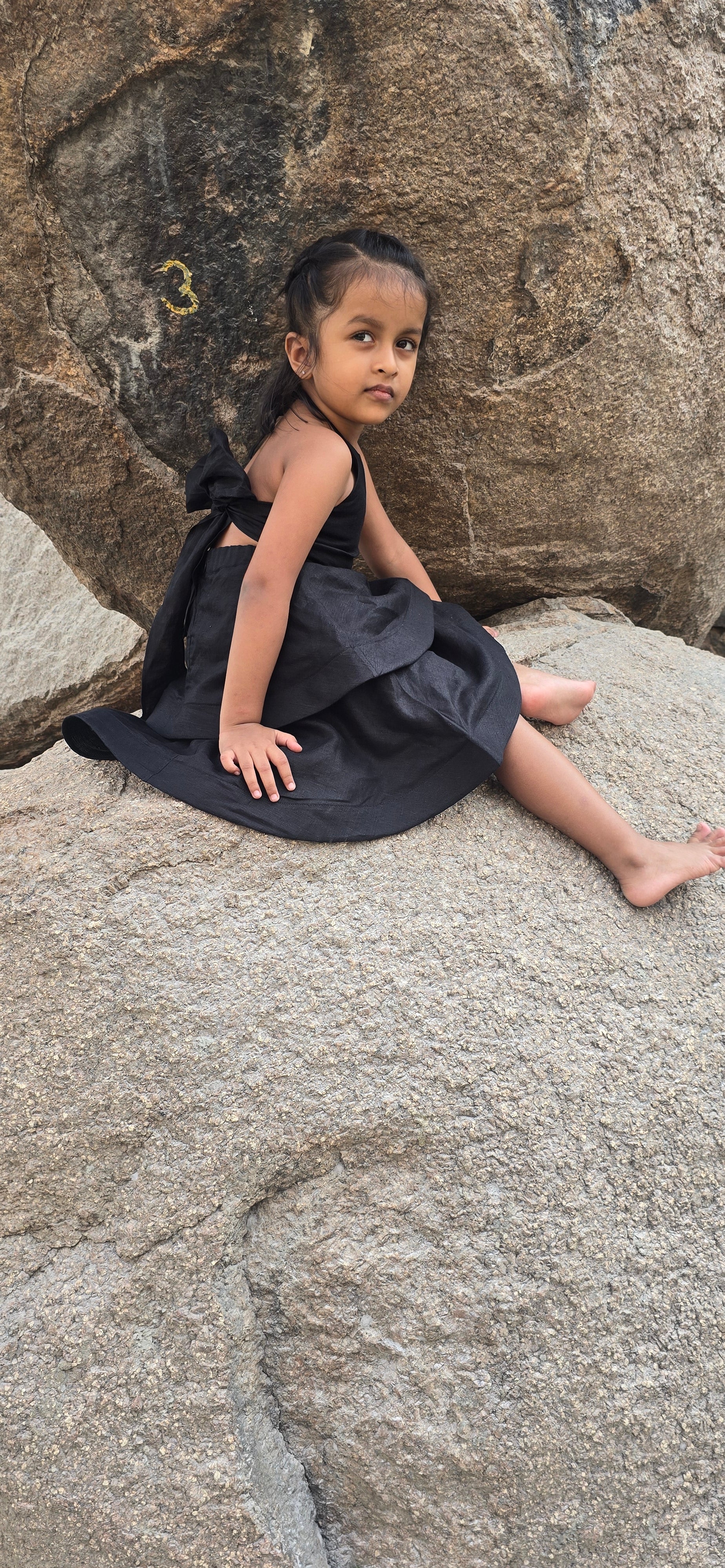 ANA BACK BOW DRESS : Black