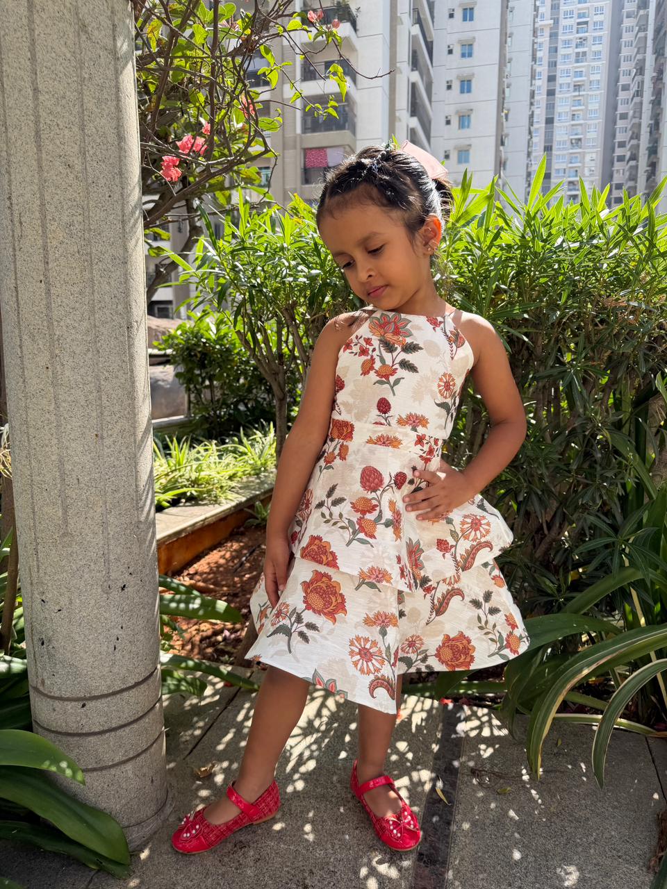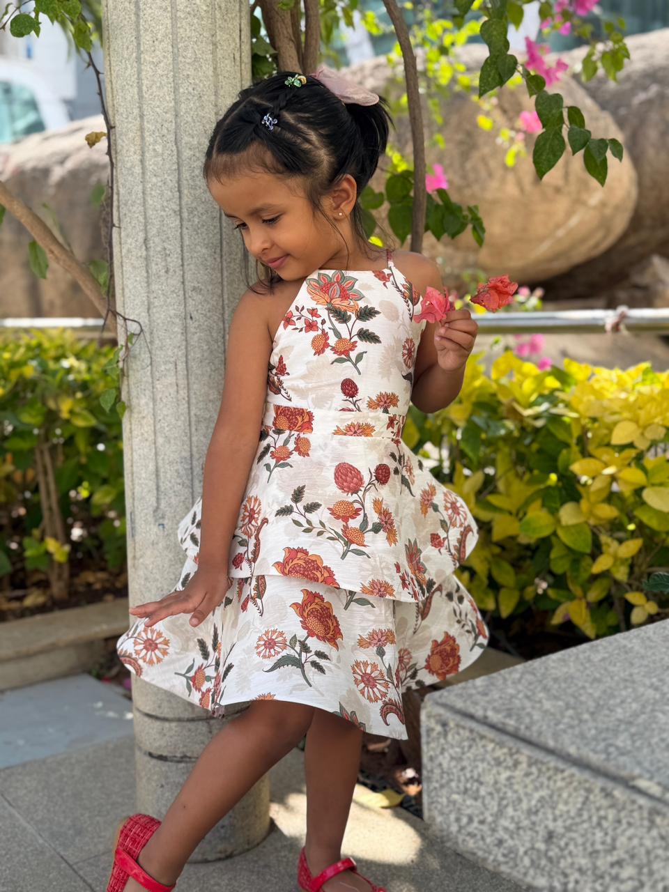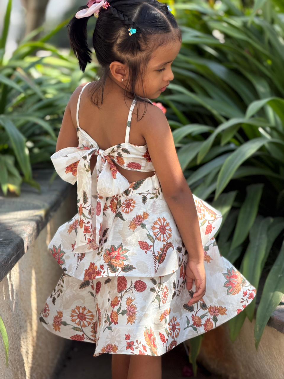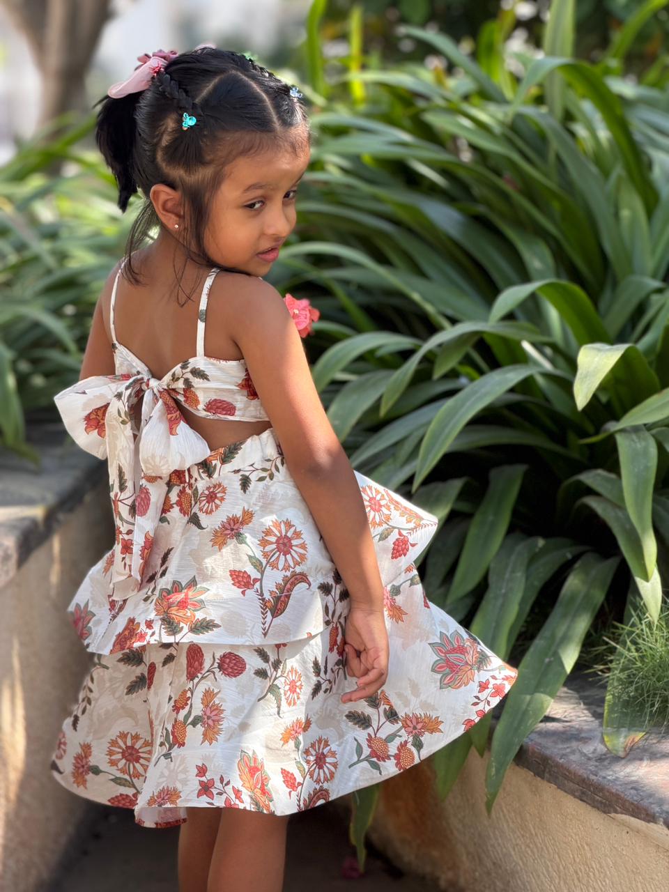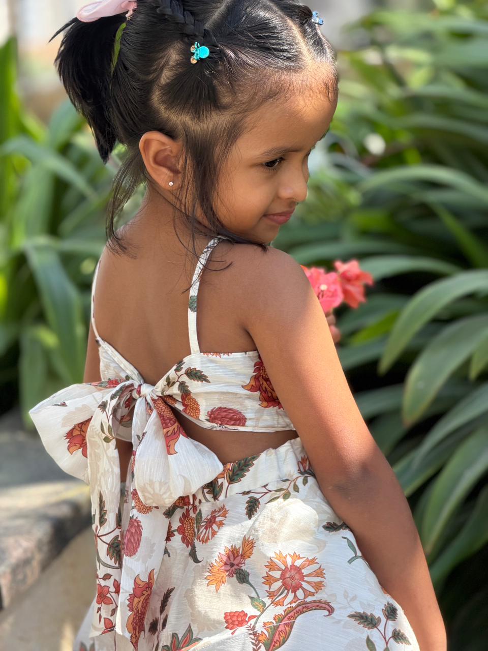 JASMINE BACK BOW DRESS : Cornflower Multi Color Print