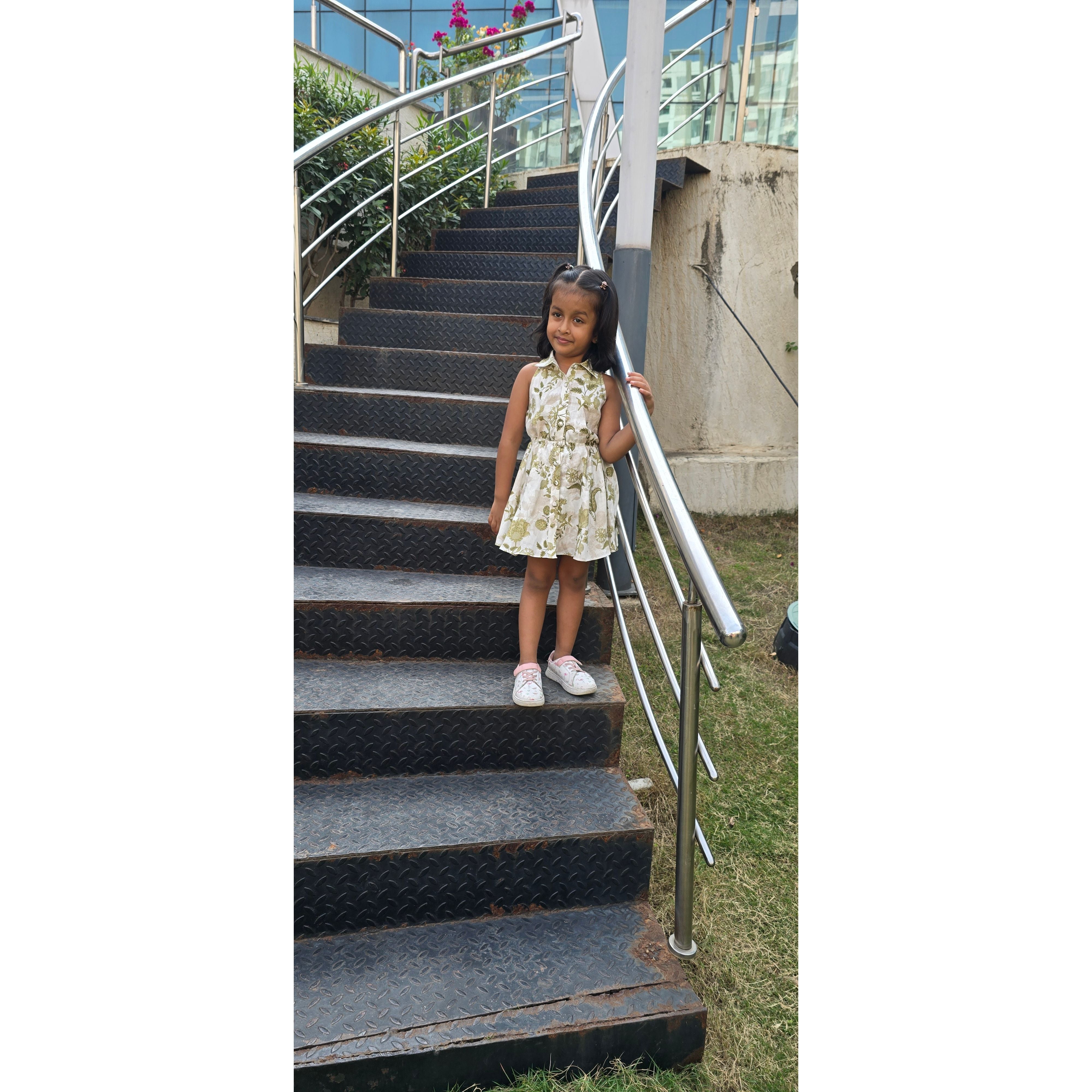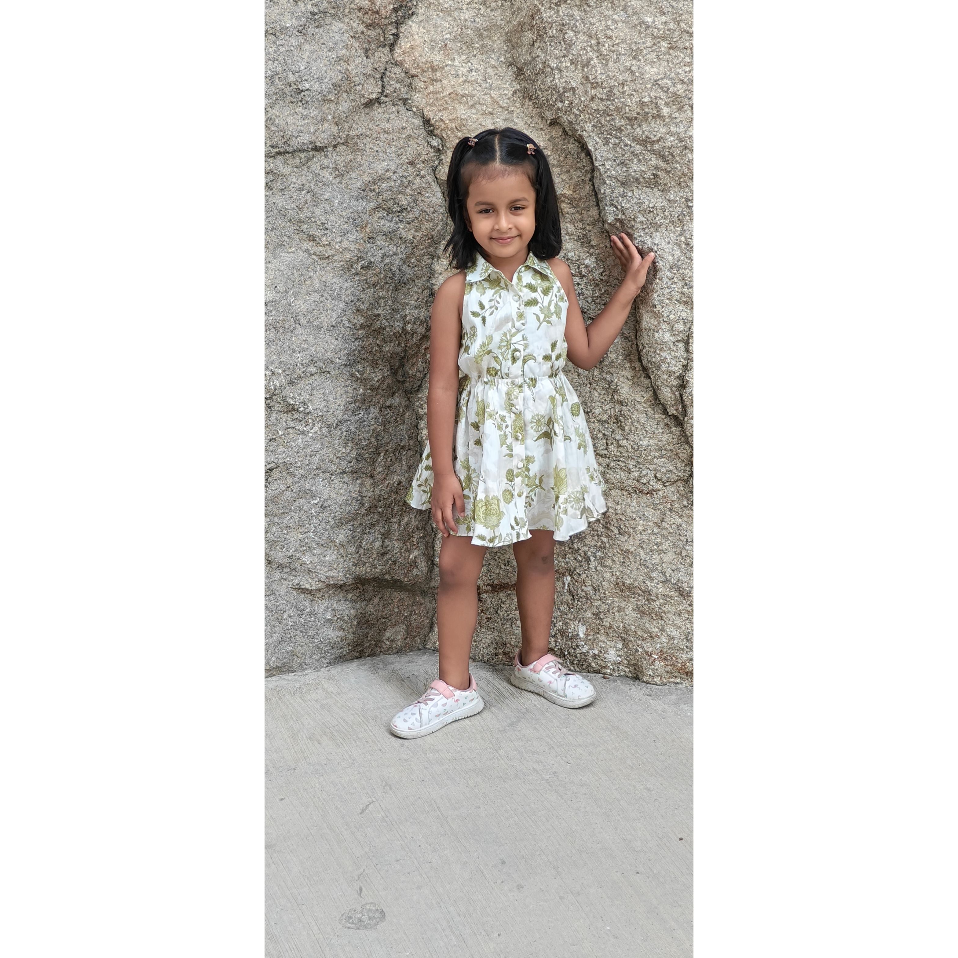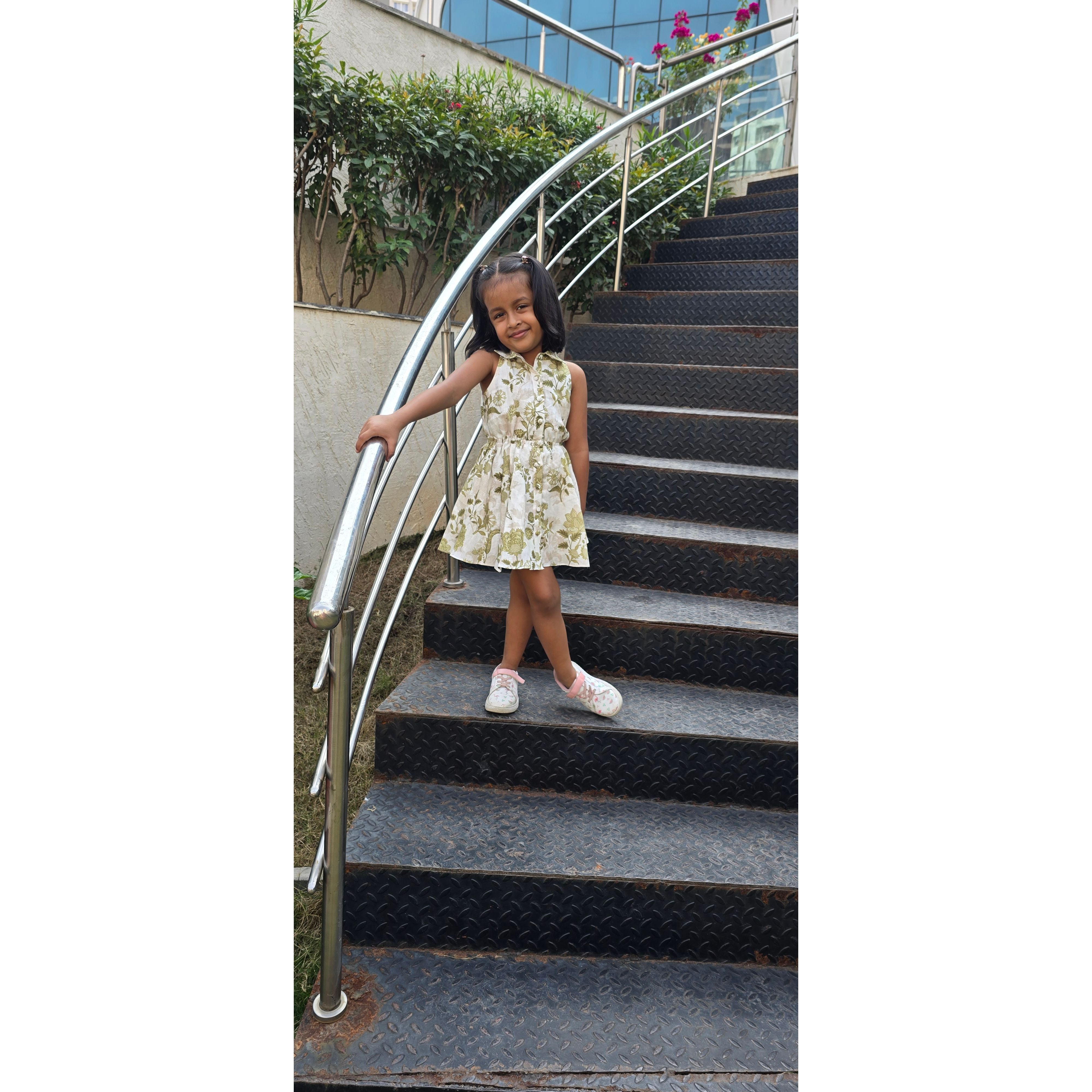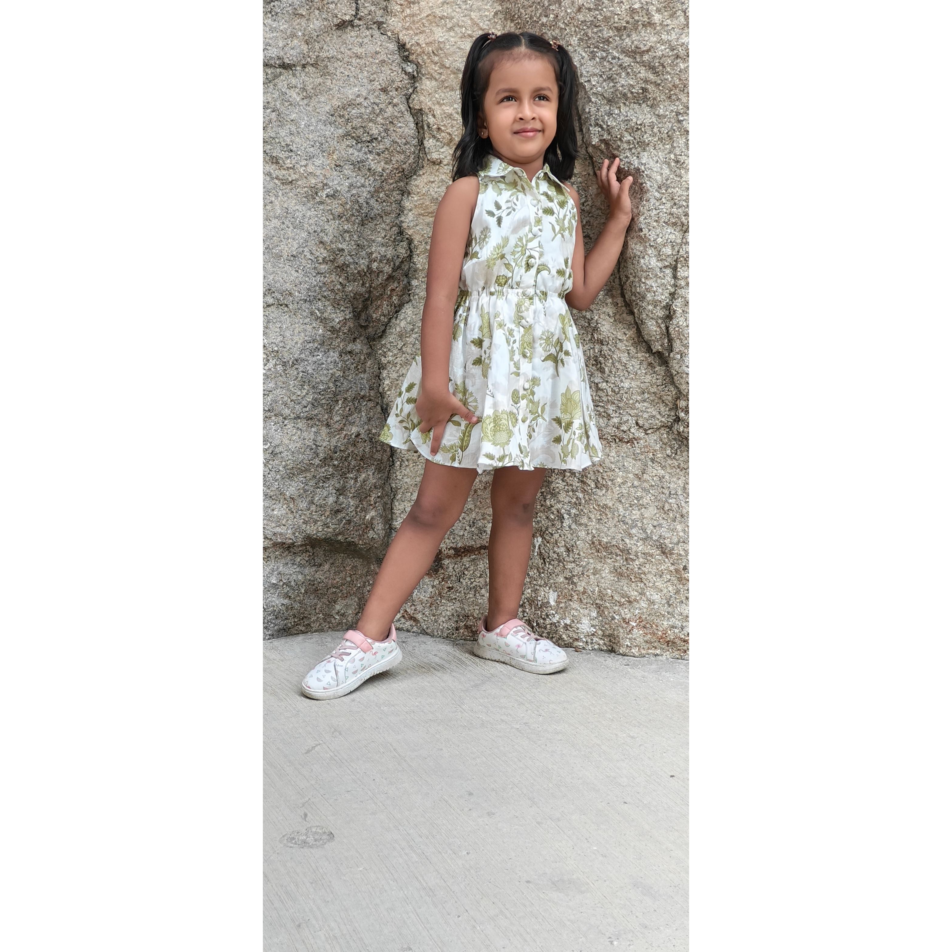 ELSA DRESS : Cornflower Emerald Print