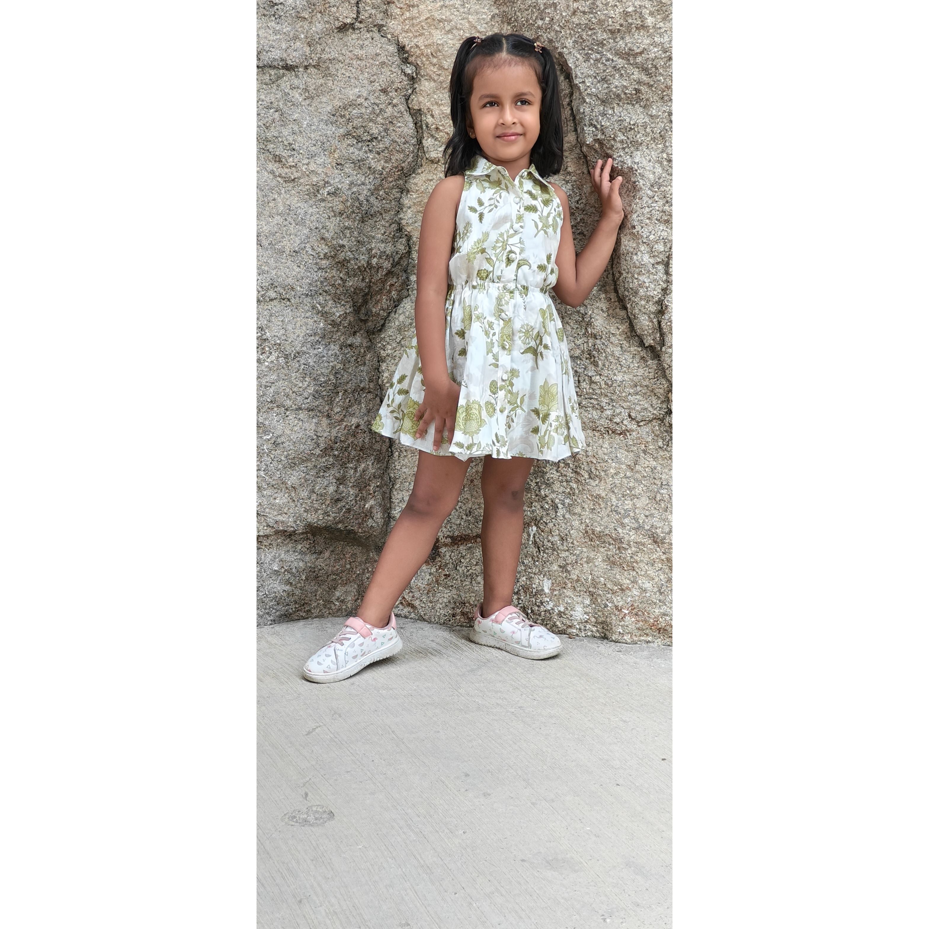The ELSA Skater Shirt Dress captures effortless elegance with its premium linen in a captivating emerald cornflower print. Its relaxed silhouette flows gracefully, cinched gently at the waist for a flattering shape. The halter neckline with a refined collar and delicate button-down front lends a touch of charm and sophistication. This mini-length dress embodies playful femininity. Lined with soft cotton, it promises comfort and breathability through every season — perfect for sunlit days and evening soirées alike