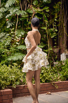 The ELOISE back tie top is beautifully crafted from a luxurious silk linen printed fabric, featuring the elegant and timeless Emerald Cornflower Print.