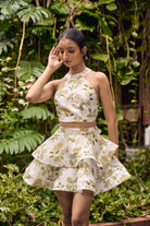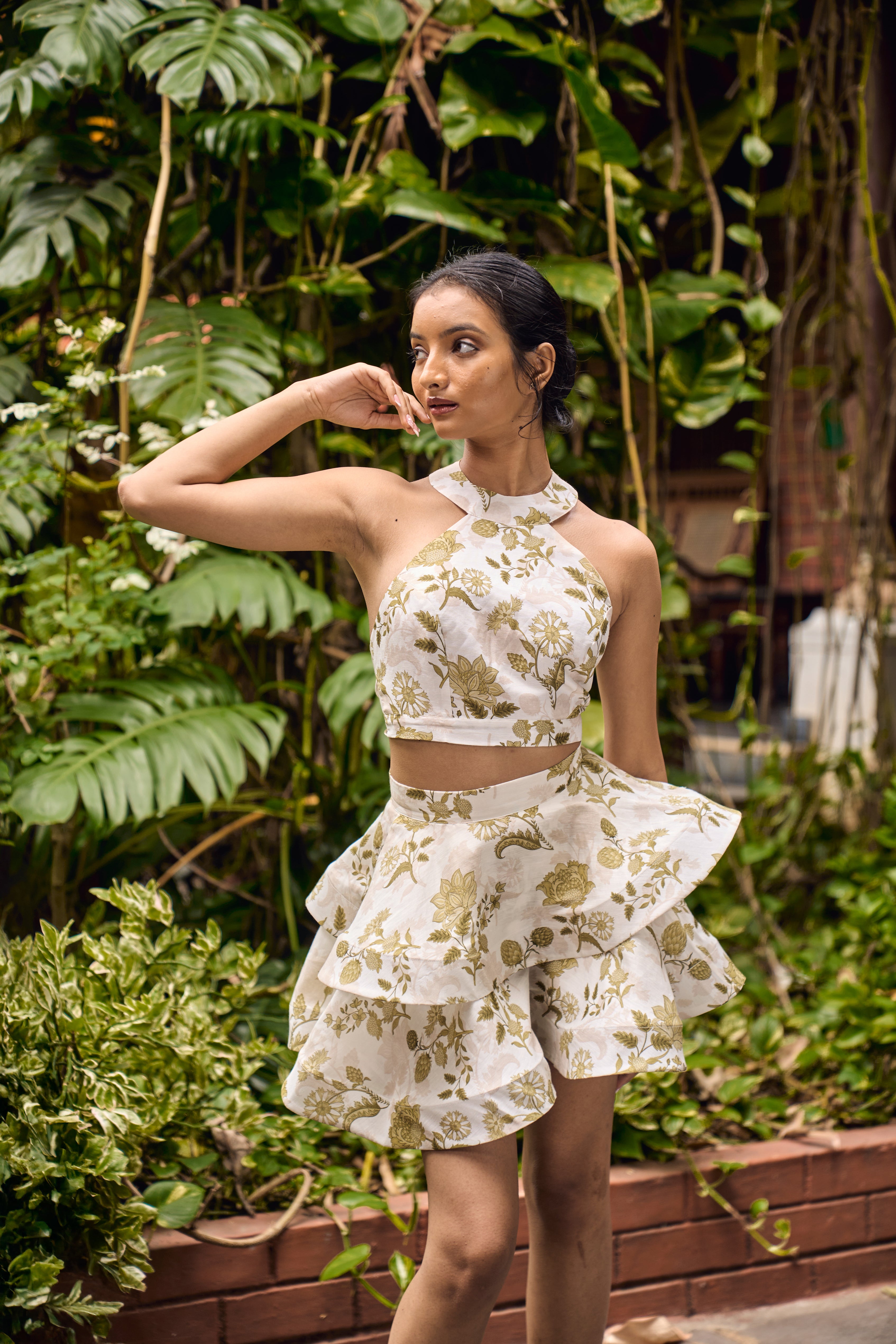 This crop top is paired with our AAMIRAH ruffled voluminous skirt, making it a beautiful piece for party wear.