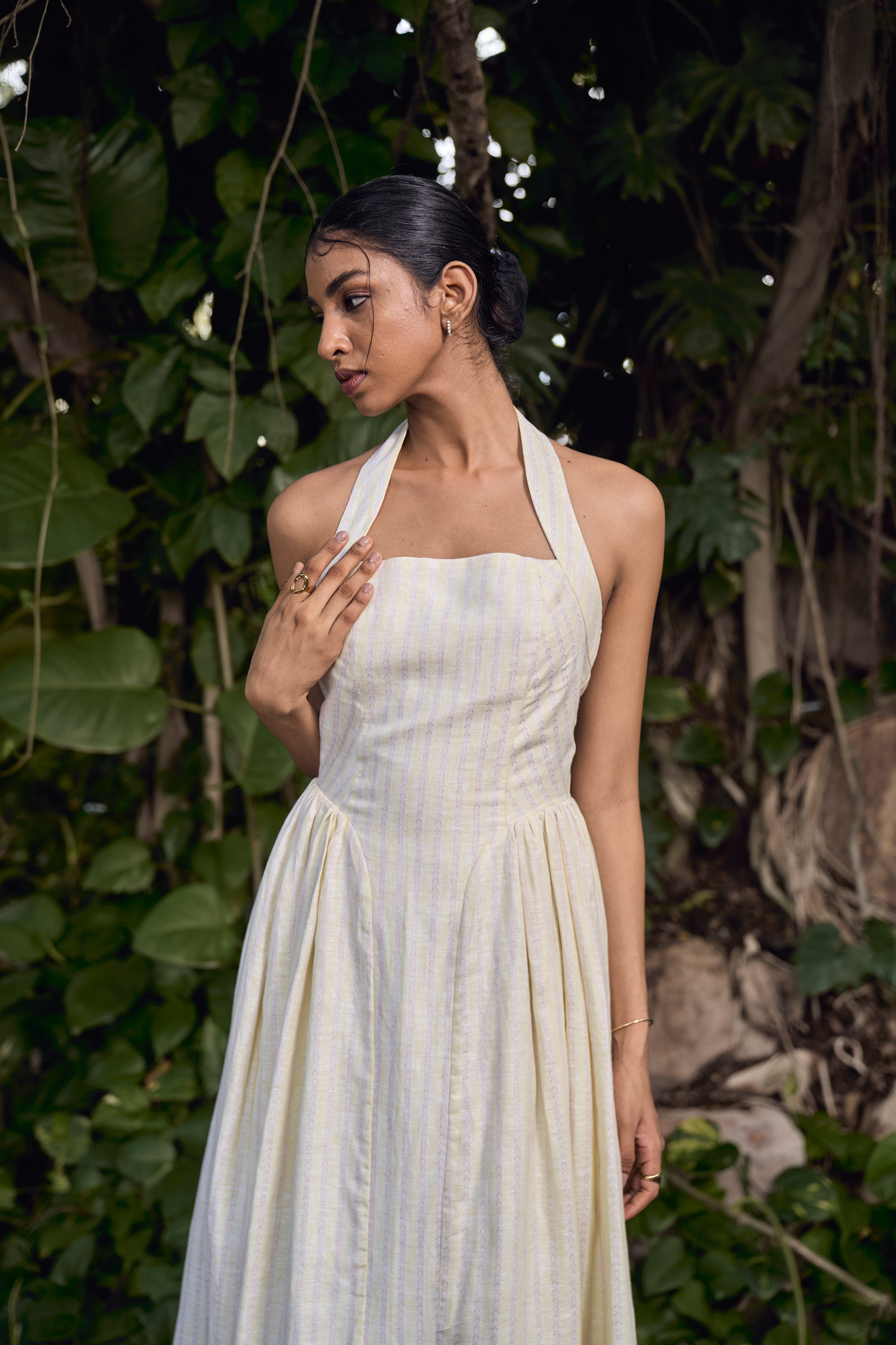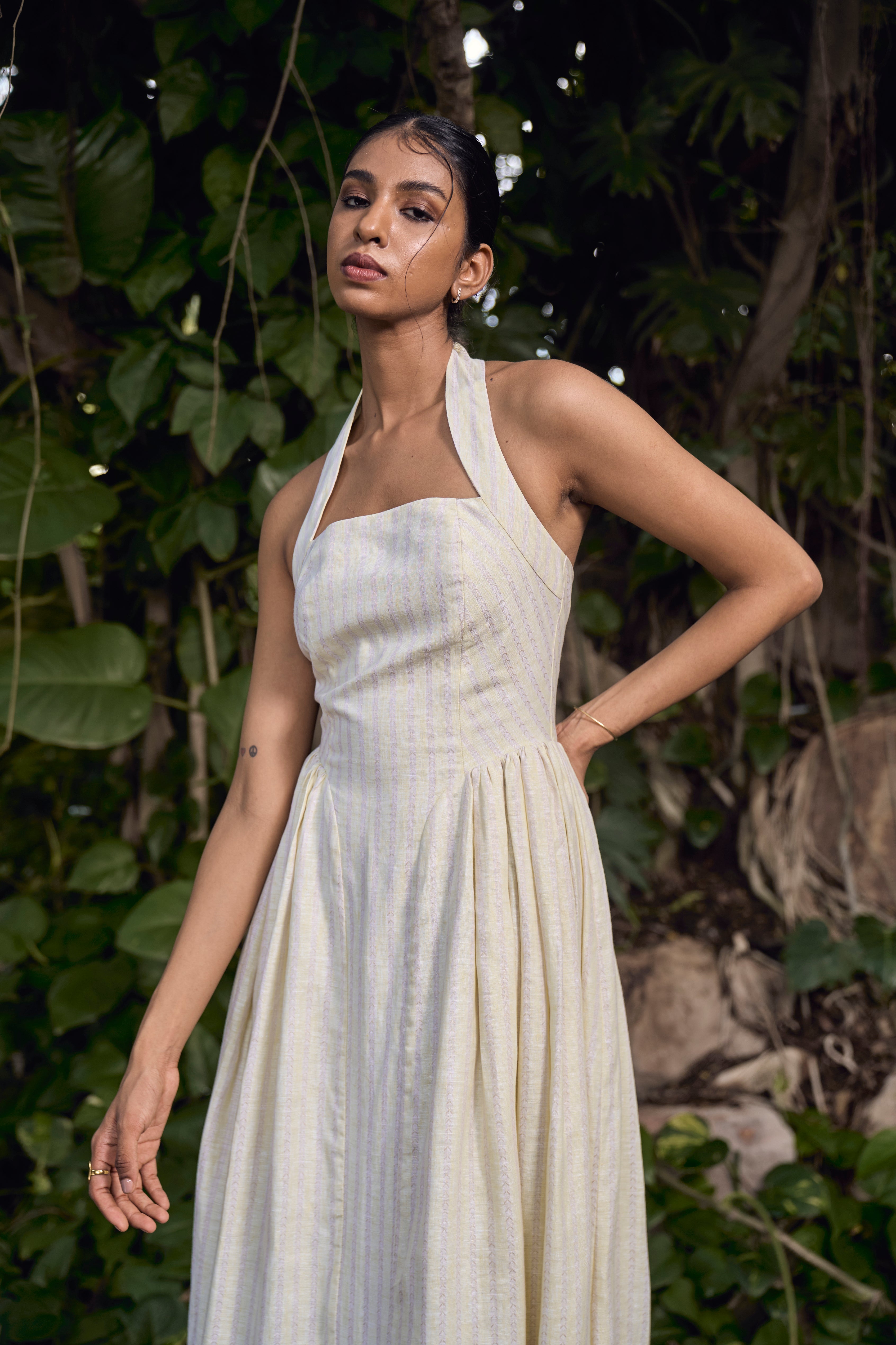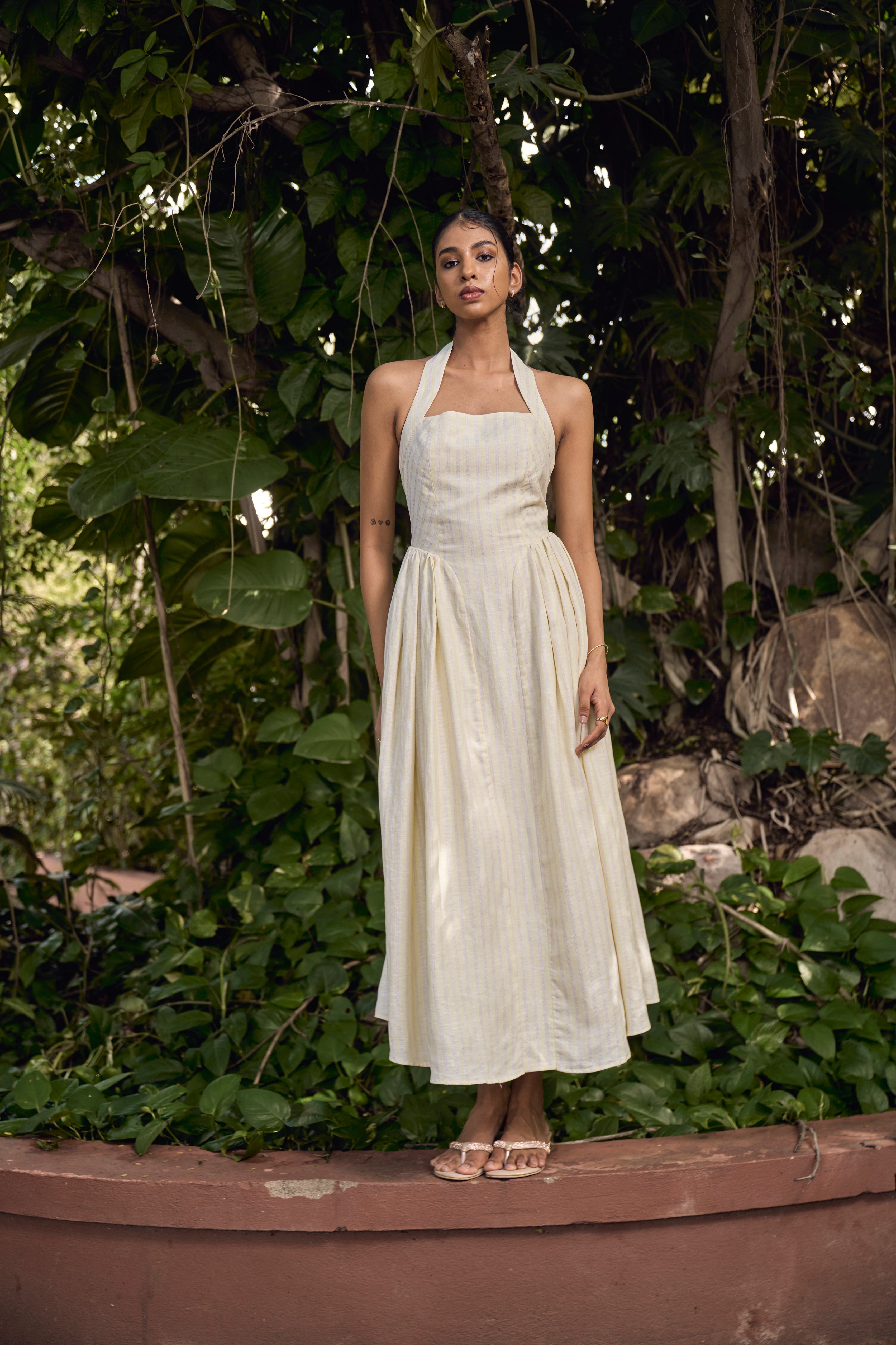BRIELLE HALTER DRESS : PALE YELLOW BY BEIGE